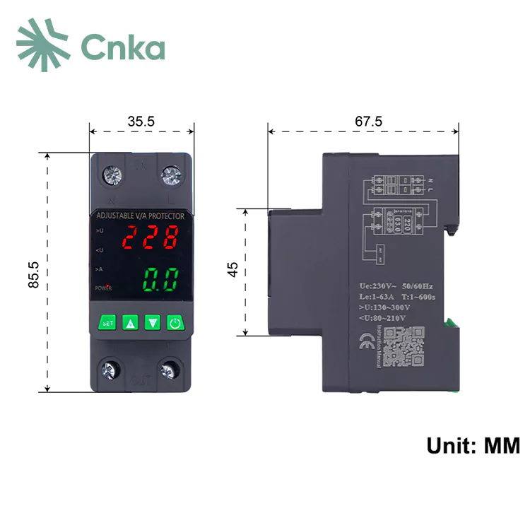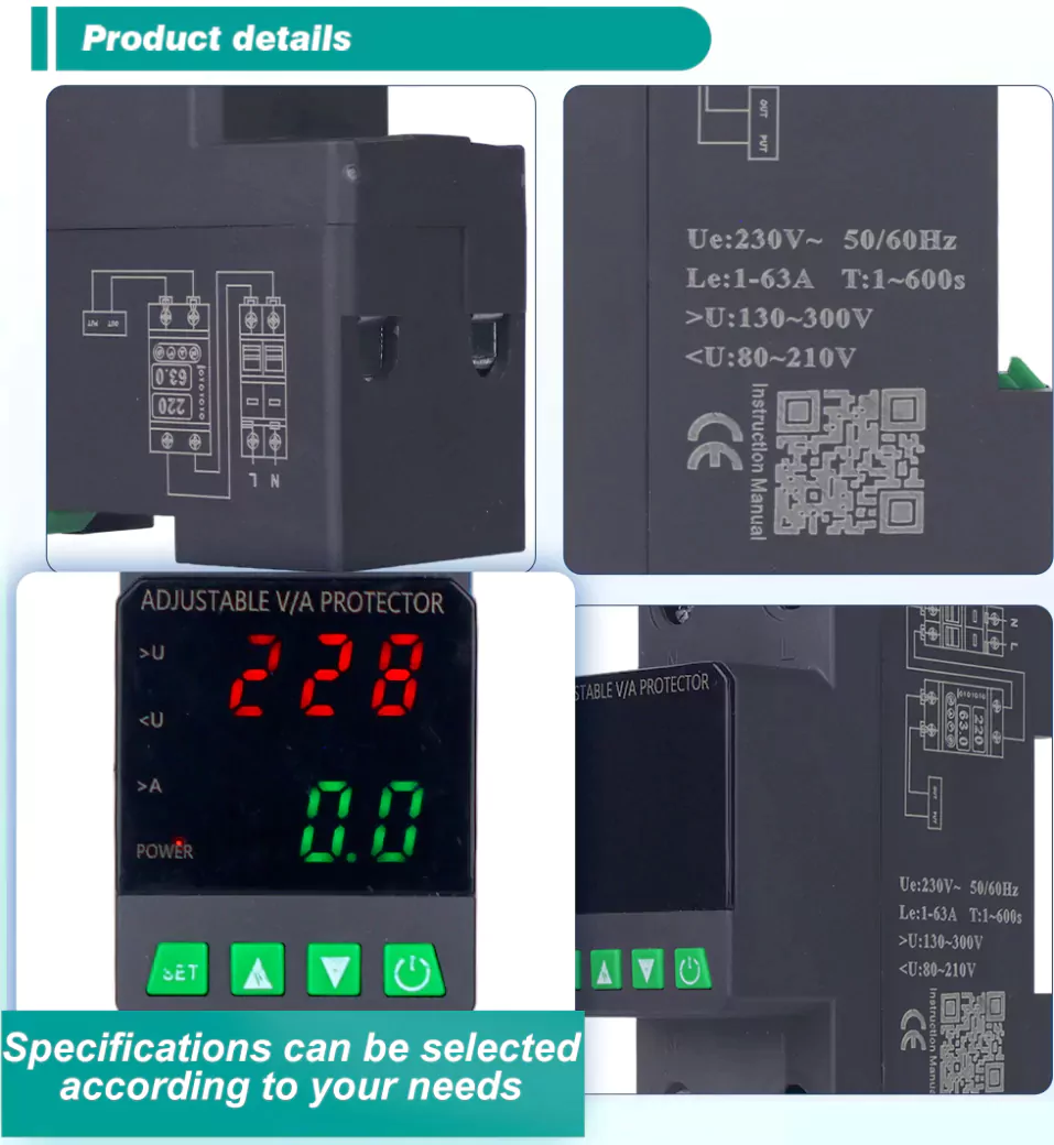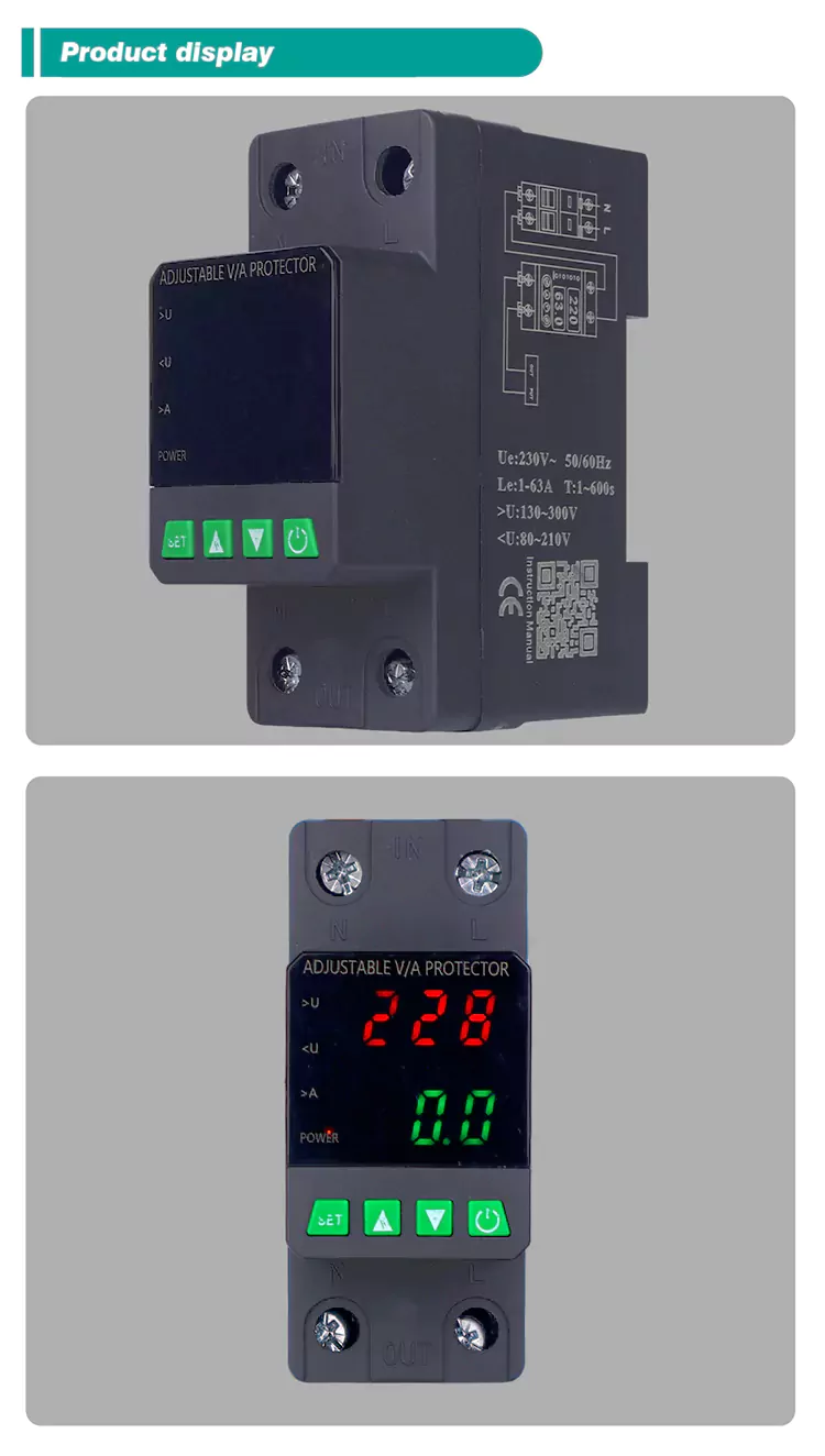 Сандық дисплеймен жабдықталған және импортталған модульдік электронды компоненттермен бірге дайындалған, оның жоғары сенімділігі мен өнімділігі жоғары. Қорғау көлігі автоматты түрде және жылдам кернеулер кезінде қуат көзін (кернеу, астын сызу немесе тор құбылуы) өшіреді және кернеу қалыпты қалпына келтірілгеннен кейін қуат көзін қалпына келтіреді.